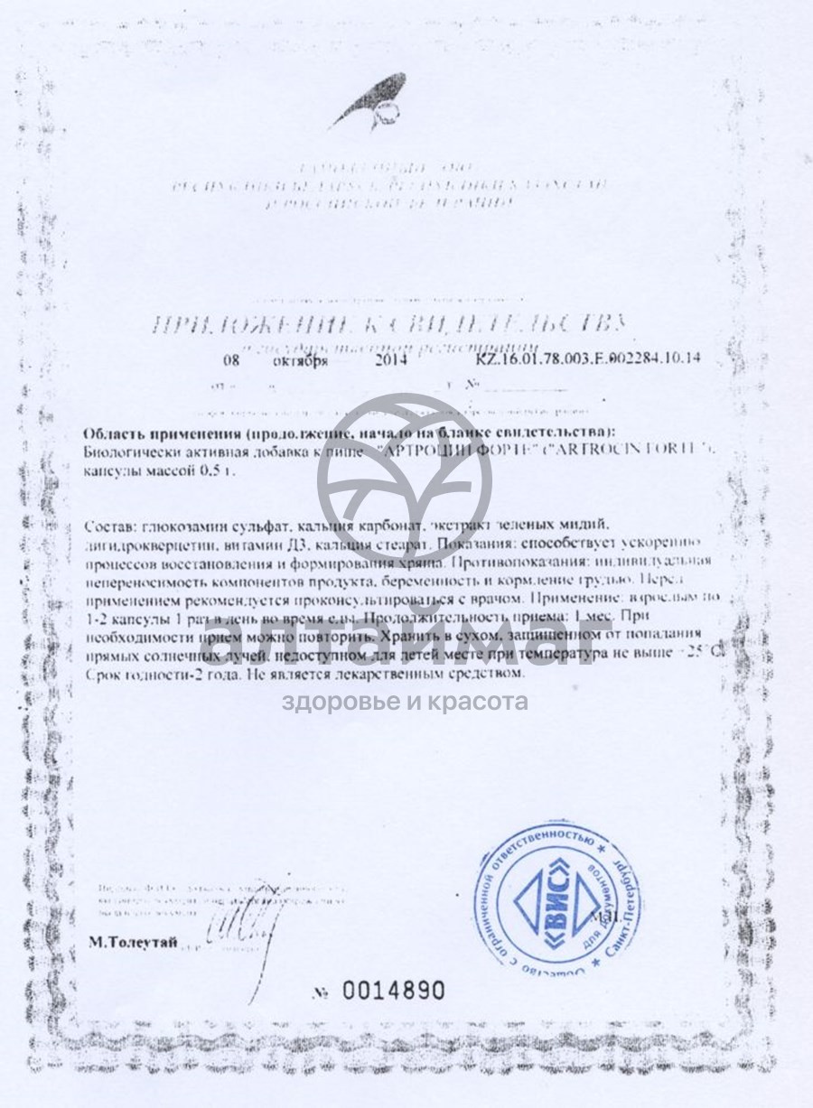 - Чтобы купить Артроцин Форте ВИС 36 капсул совершите всего несколько шагов: укажите количество продукта и нажмите на кнопку «Купить».