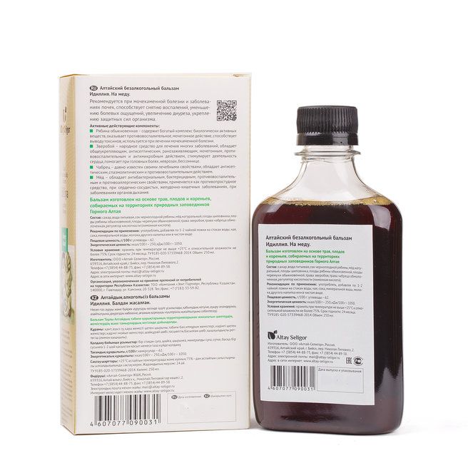 Алтайский бальзам на травах рекомендуется при отеках и воспалений в почках. Безалкогольный бальзам оказывает противовоспалительное и мочегонное действия в организме.