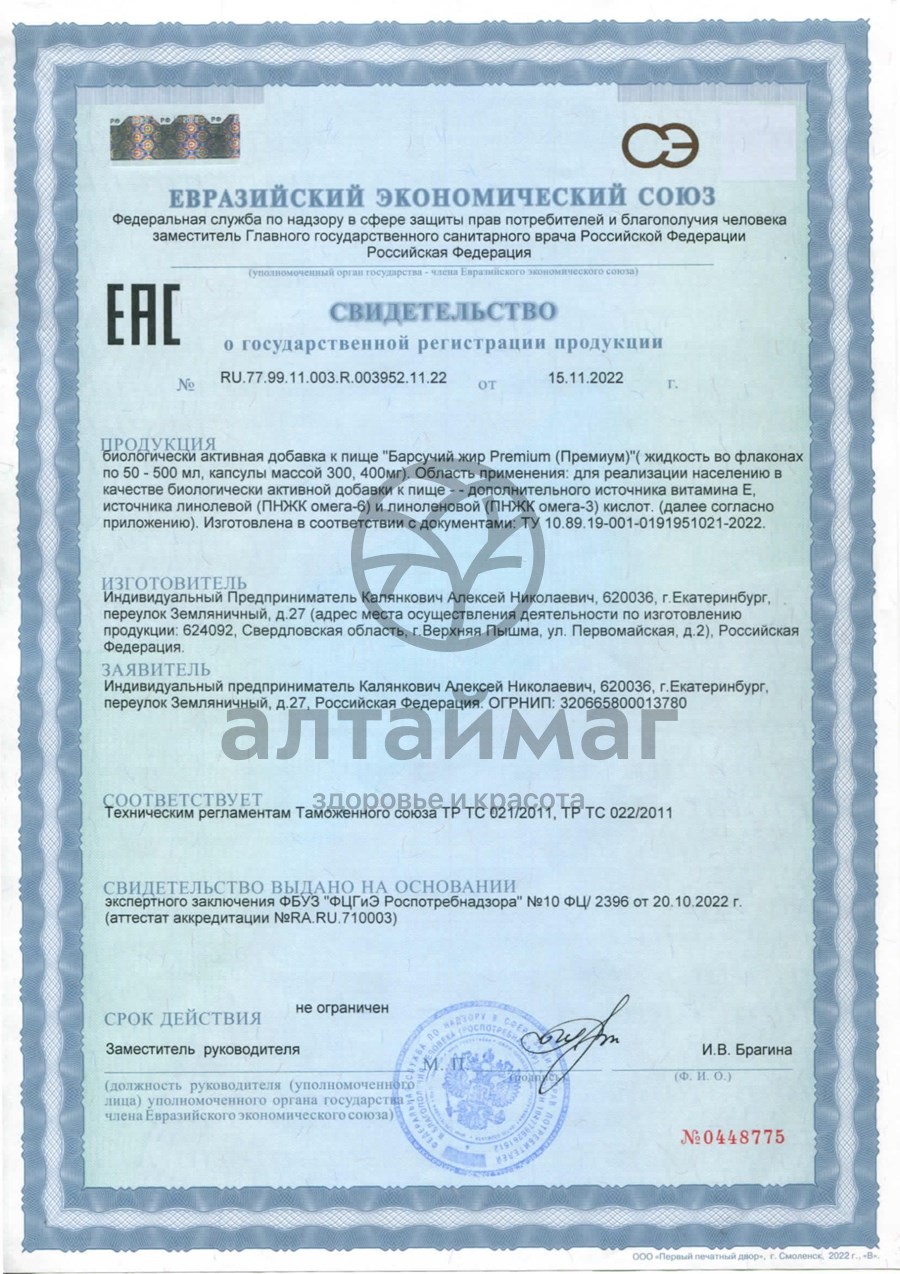 100% барсучий жир, витамин Е.