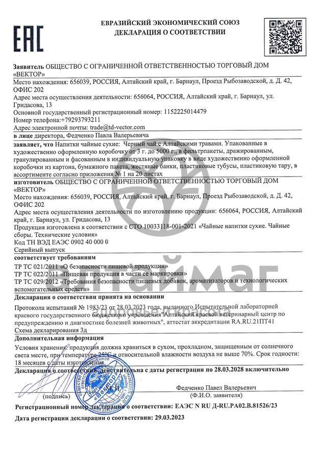 - Чтобы купить Чай черный с Чабрецом Вектор №20 совершите всего несколько шагов: укажите количество продукта и нажмите на кнопку «Купить».