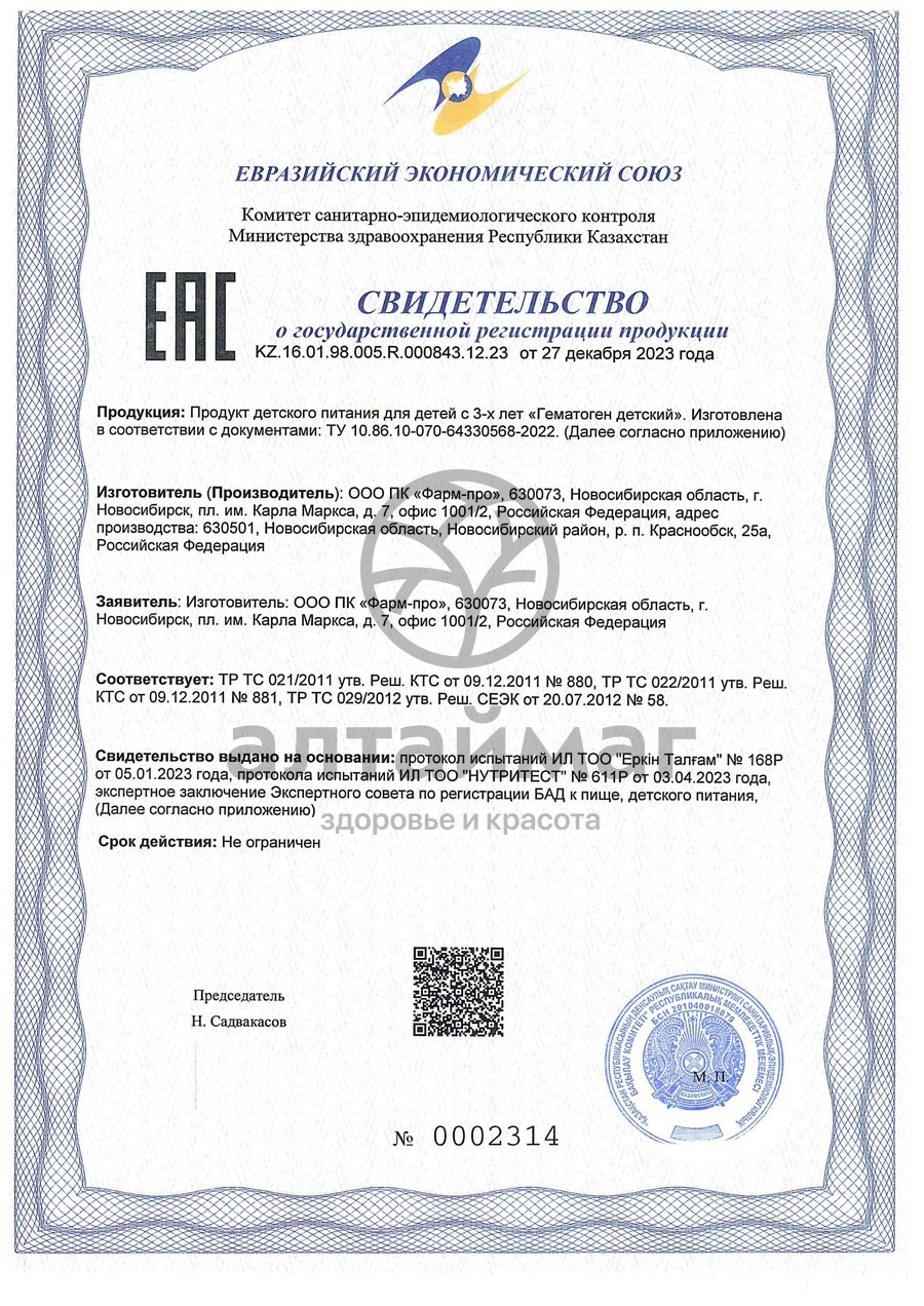 Есть вопросы по товару "Гематоген детский Русский 40г"?