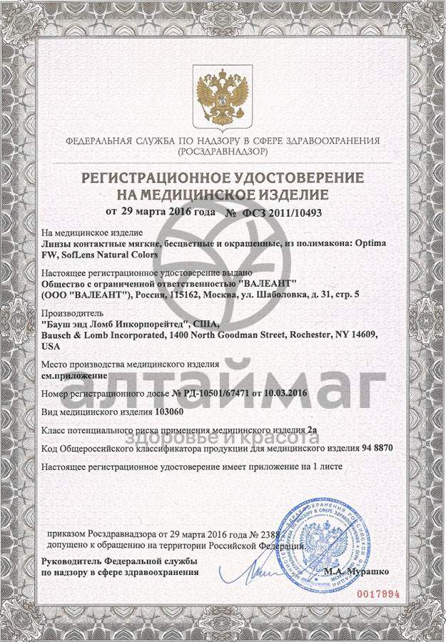 Режим ношения - дневной.Замена - через 3 мес.