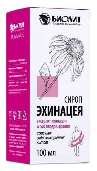 - Чтобы купить Сироп Эхинацея Биолит 100мл совершите всего несколько шагов: укажите количество продукта и нажмите на кнопку «Купить».