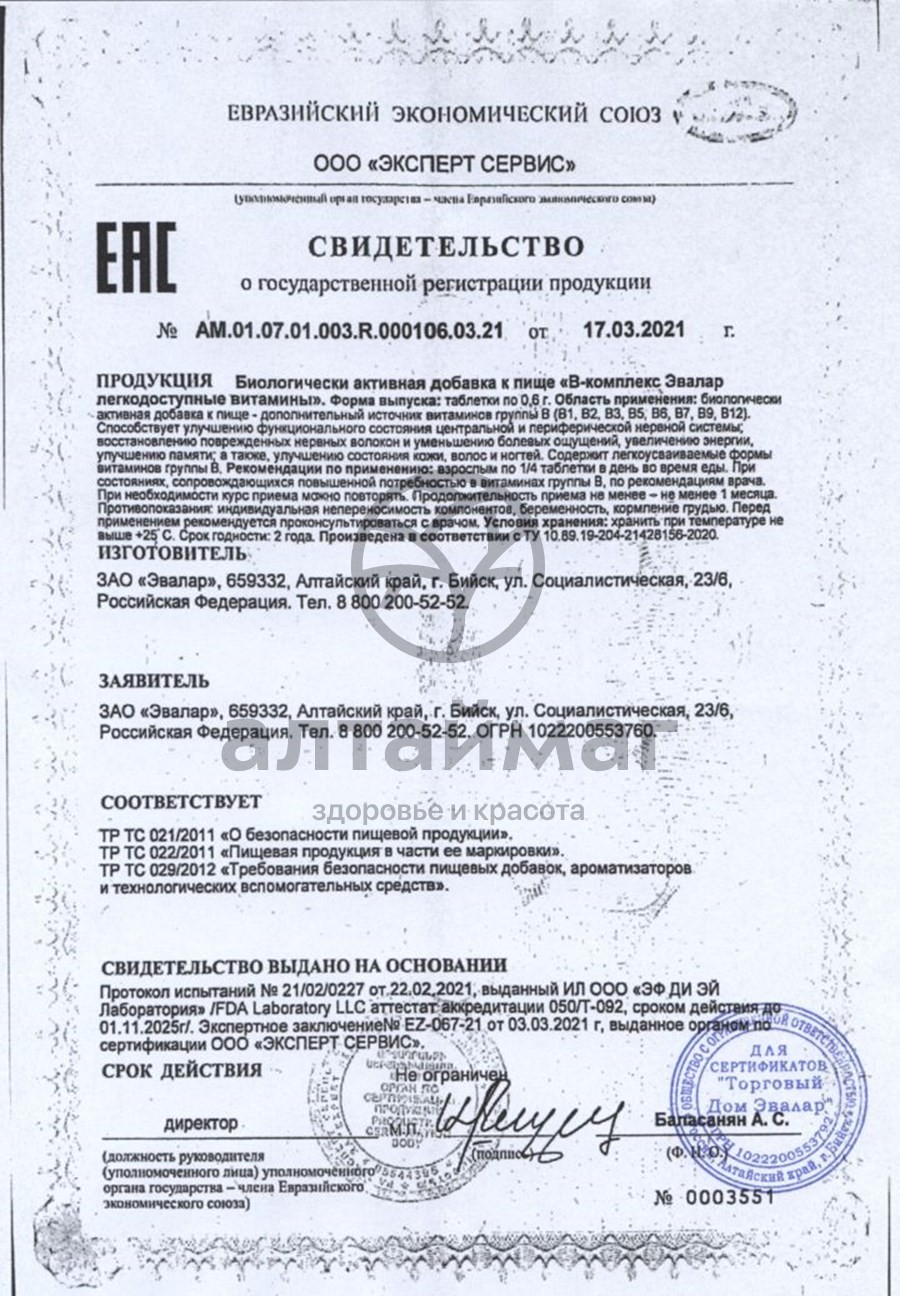 В-КОМПЛЕКС ЭВАЛАР ЛЕГКОДОСТУПНЫЕ ВИТАМИНЫ