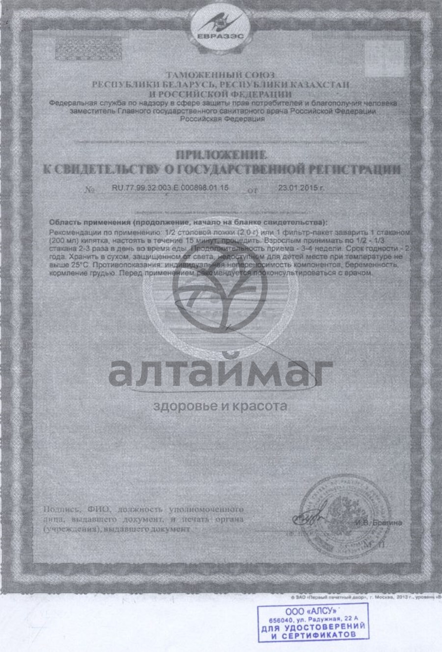 • В карточке товара находится: описание, инструкция по применению, отзывы и сертификаты.